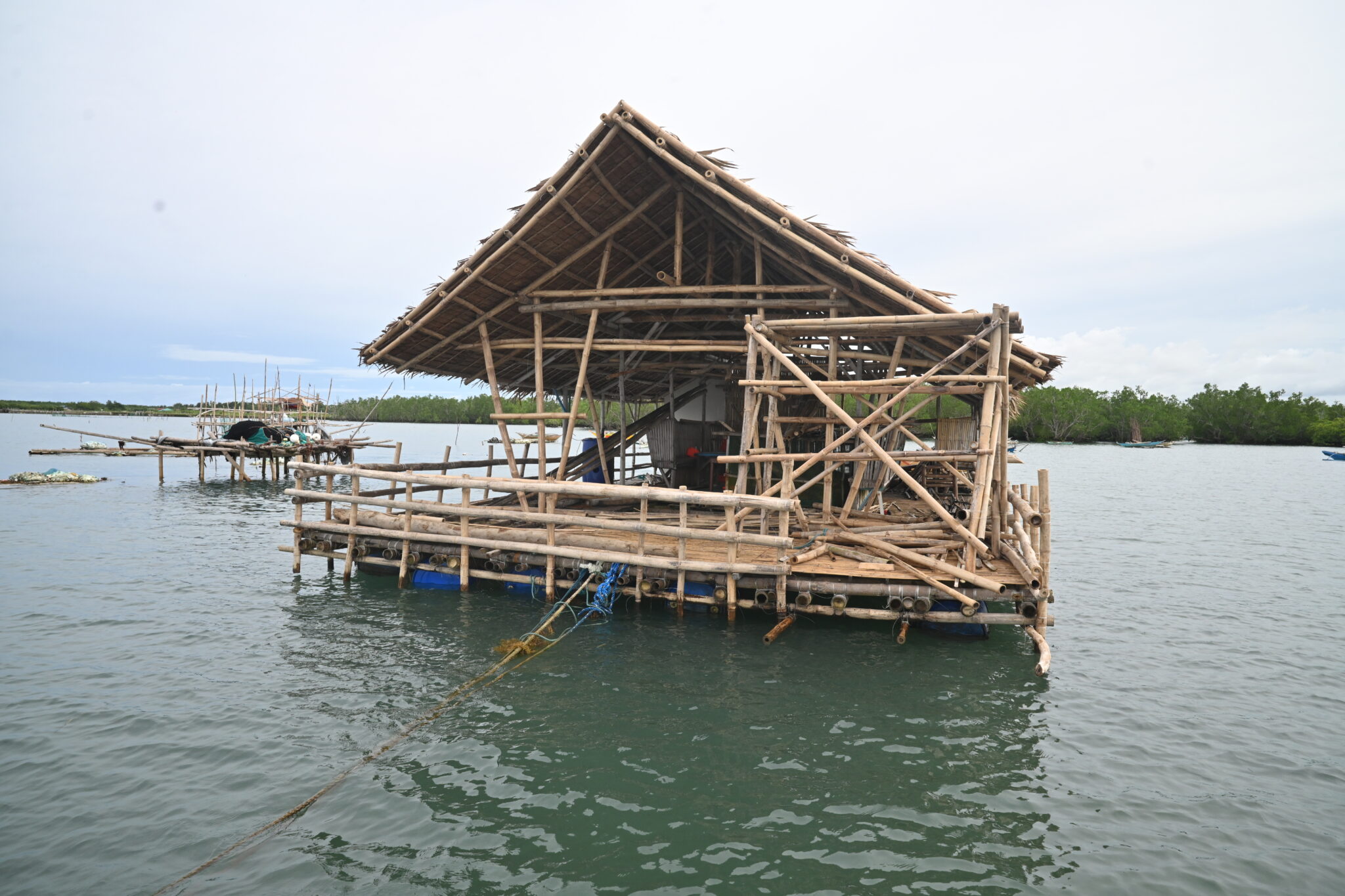 In 2021, some of the fisherfolk started a small business, renting floating cottages to tourists. Their first effort was both unsafe and potentially damaging to the reefs, if tourists dropped their anchors carelessly. Since then, they installed durable floating cottages permanently in a safe area, and tourists can kayak through the mangroves.